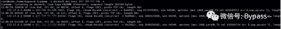 tcpdump -i docker0 dst host xx.xx.xx.xx -v