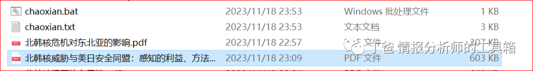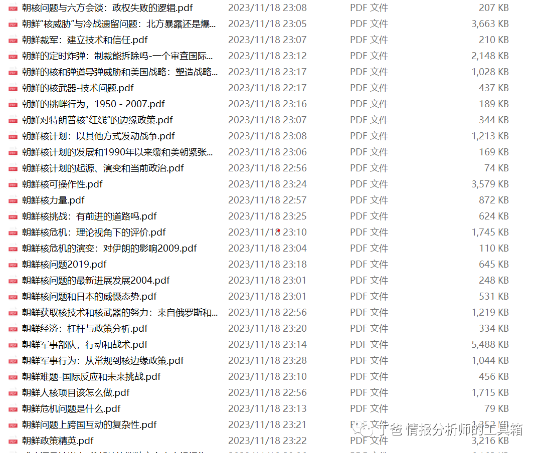 今天给大家推送两个能快速导出某个文件夹中所有文件名称的方法,上面的文件夹就是存了很多与朝鲜核相关的文件夹,需要批量导出这些文件的名称。