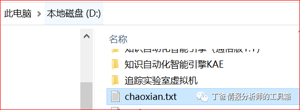 在d盘的文件夹中出现一个名为chaoxian的.txt文件,该文件将记录d盘下面名为chaoxian的文件夹下面所有的文件名称。