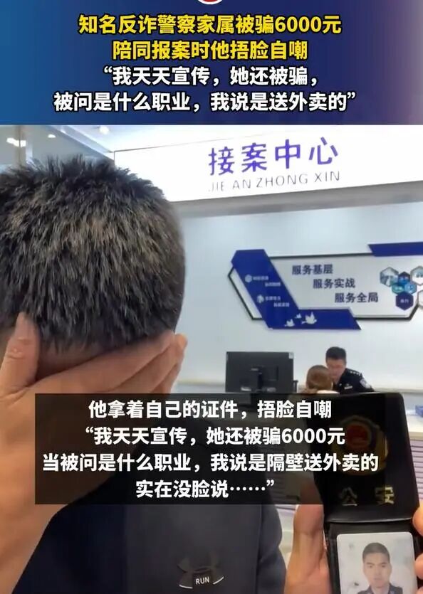 而更让人意想不到的是,这位赫赫有名的反诈警察在陪同家属报案时,竟然捂脸自嘲,说自己天天宣传反诈,没想到家人还是被骗了。