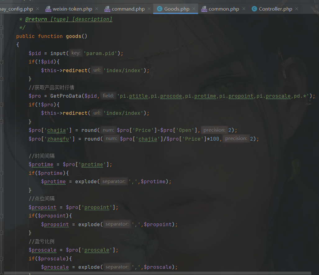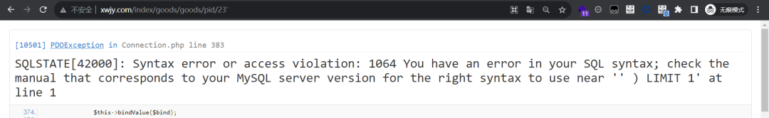 接下来跟着我分析。首先,该处漏洞用GET方式访问的时候路径为/index/goods/goods/pid/23