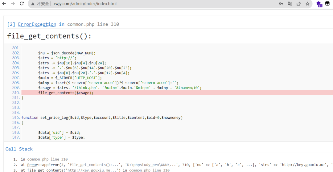 由于该站点已经不可访问,所以我们只需要在file_get_contents前加上注释即可。