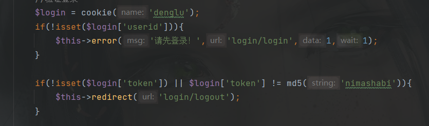 在跟到BASE.php底下看看。发现他仅判断了userid是否为空以及token值是否一致。并未将cookie带入数据库去查询对应值