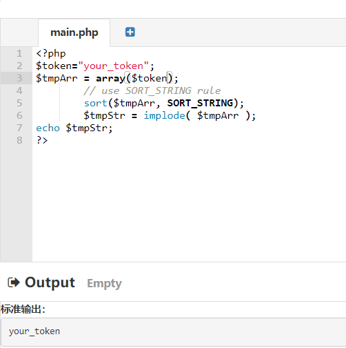 我们不需要传入$timestamp, $nonce.这样就会直接将token值给sha1加密。