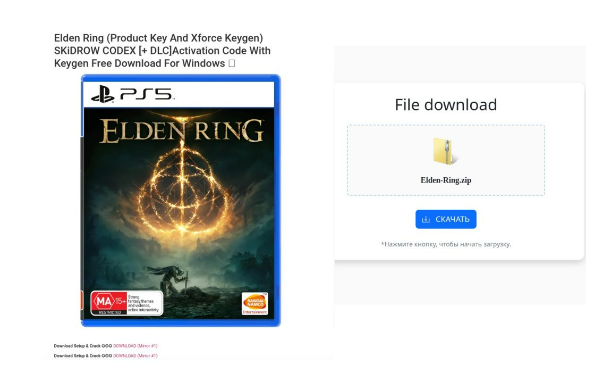 其中一些页面在“下载”按钮下方显示相对较高的下载次数,向用户保证该软件是安全的。单击该按钮会下载一个存档,其中可能包含不需要的甚至危险的软件,但不一定是游戏本身。