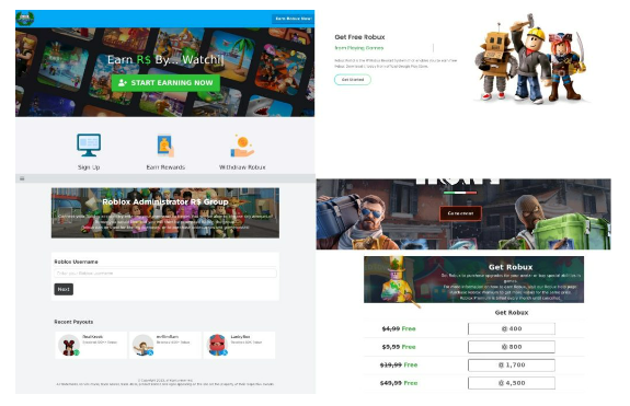 对于Roblox玩家来说,欺骗者会免费提供榨取、生成或获取一些Robux(Roblox游戏内货币)的服务。与《Apex Legends》的例子类似,如果用户试图提取“赚来的”或产生的钱,他们必须在欺诈网站上付款。