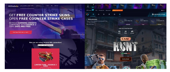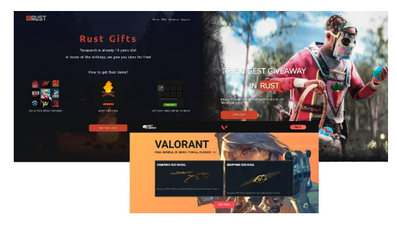 游戏中最受欢迎的诱惑之一是免费赠送游戏内物品或皮肤。下面截图中的慷慨优惠很可能会导致用户Steam或Riot Games帐户被盗。该计划很简单:要参与虚假赠品,就必须登录相关帐户,这意味着在网络钓鱼网站上需输入凭据。