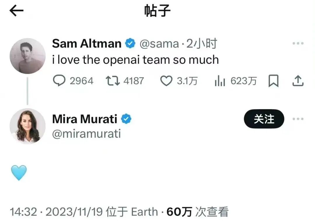 据《The Information》最新报道,兴盛资本、微软等 OpenAI 投资者正在施压 OpenAI 董事会,试图撮合 Altman 复职一事。「愤怒」的微软 CEO Satya Nadella 更是不遗余力地承诺支持 Altman 的抉择。知情人士也透露,虽然 Altman 已经在陆续会面投资者,为创业公司筹集资金,但对于回归仍持开放态度。i love the openai team so much 我非常喜欢 OpenAI 团队而临时 CEO Mira Murati 在帖子下面给予了回复,似乎也在暗示 Altman 的回归。尽管如此,Altman 的先决条件是要对公司治理做出重大调整,要求 OpenAI 董事会集体辞职。乔布斯重返苹果公司用12年,但是资本加持下的奥特曼重返OpenAI仅需要一天,此次回归预示着ChatGPT彻底迎来全面收费时代!代表资本彻底打败非盈利组织,OpenAI最后一块窗户纸被捅破!人工智能AI的车轮滚滚向不确定的未来驶去!!!AI 时代的苹果或 iPhone 始终会出现,没人能真正按下暂停键,OpenAI 不能,Sam Altman 也不能。