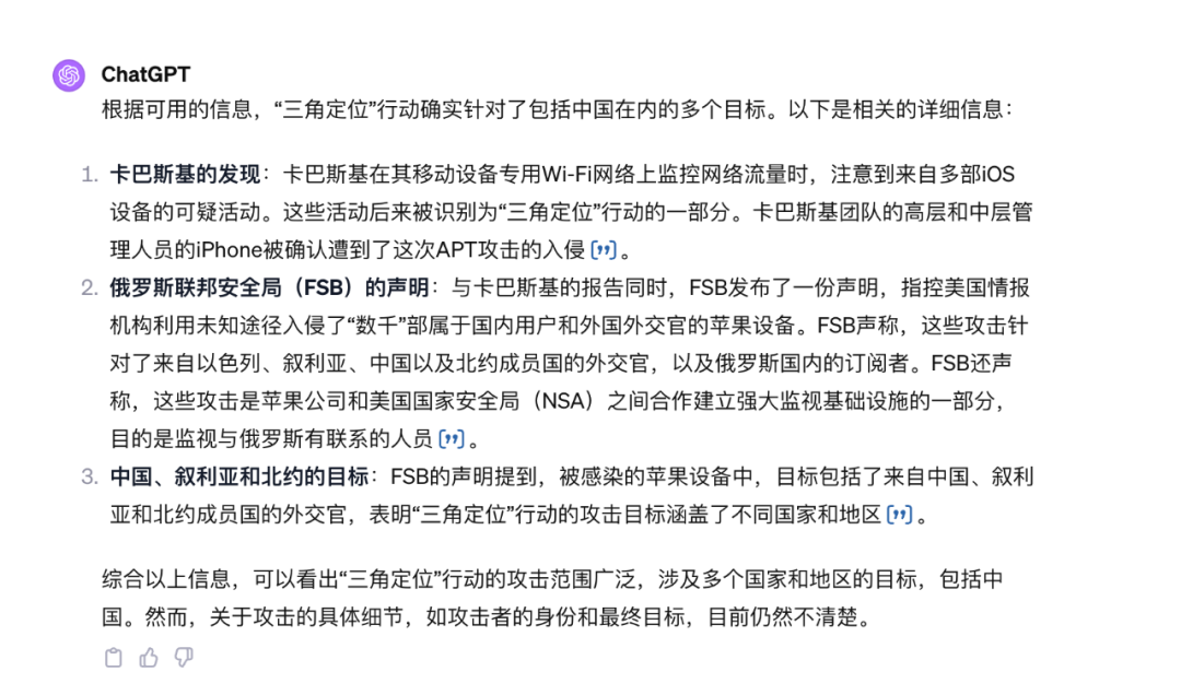 距离最早卡巴斯基及俄罗斯FSB的发布的,几个月过去了,还有没有其他的覆盖呢?因为现在ChatGPT可以联网了,所以偷懒问了下(如果有不准的不要怪我,怪GPT):