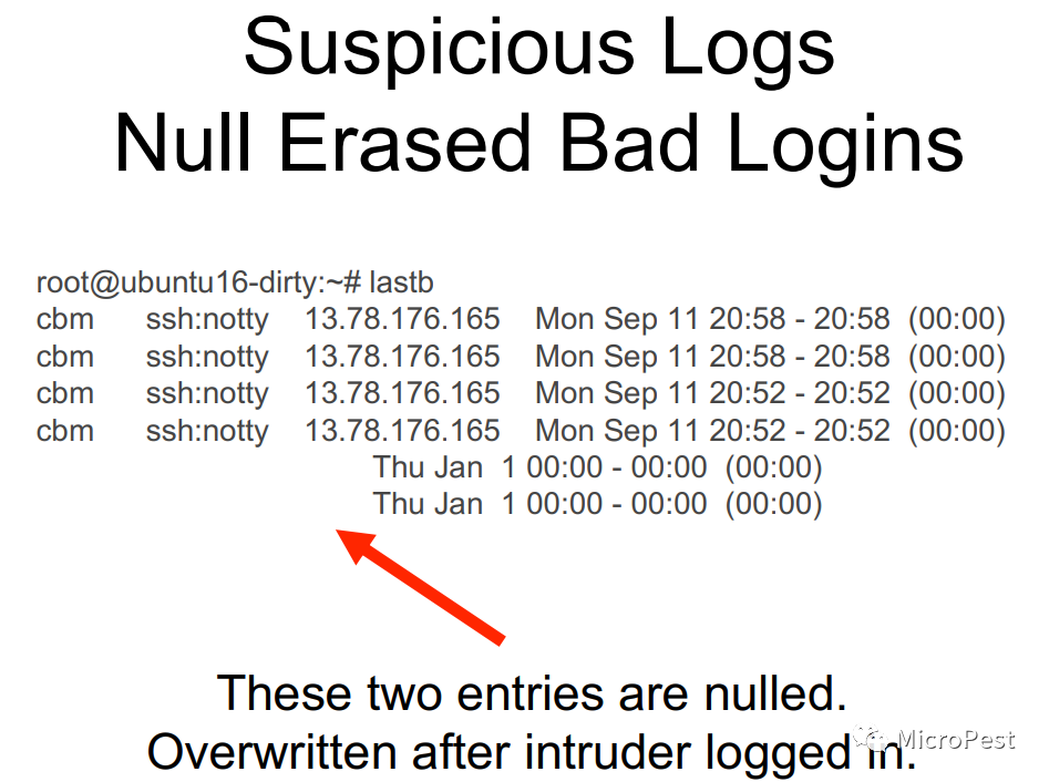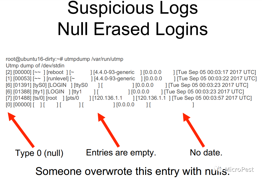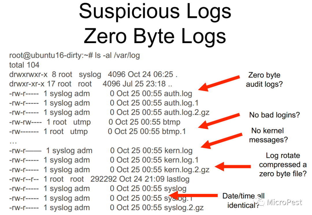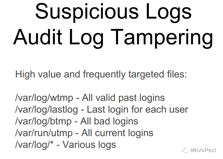 日志– 日志文件篡改检测和公共区域,用于检查有人掩盖踪迹的迹象。