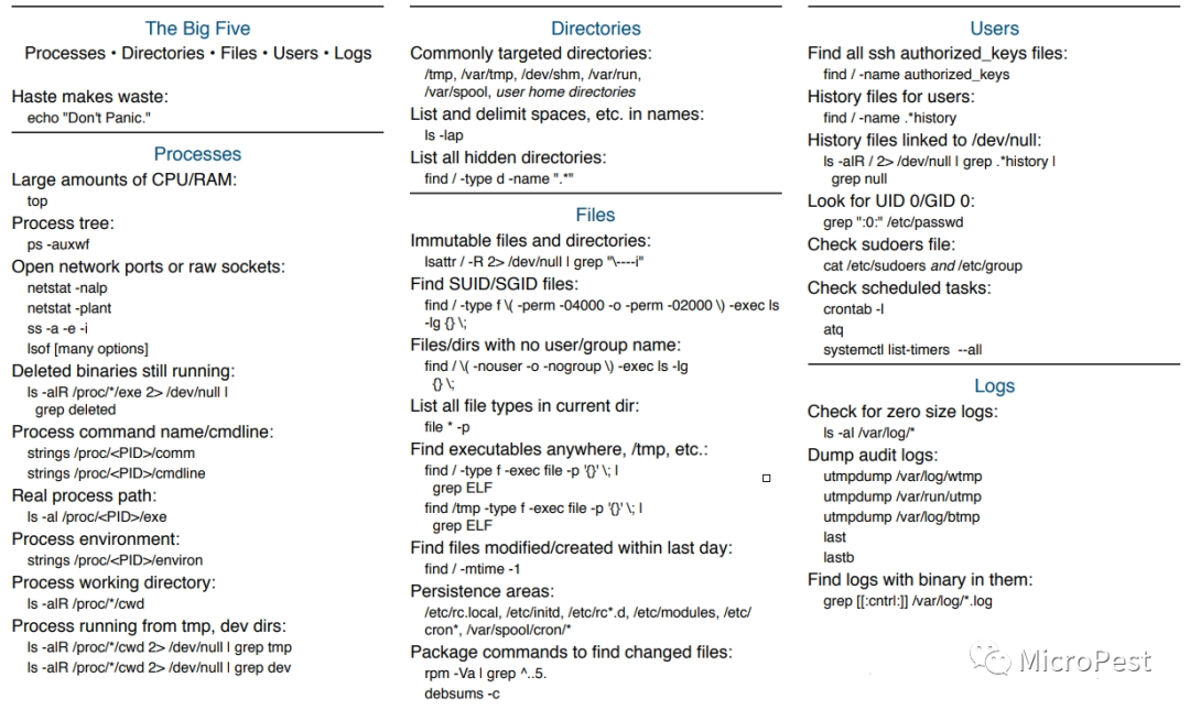 掌握下面的关注点,我们对入侵的检测就能做到游刃有余了;非常不错的Linux取证五个知识领域。