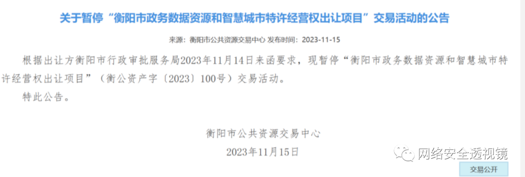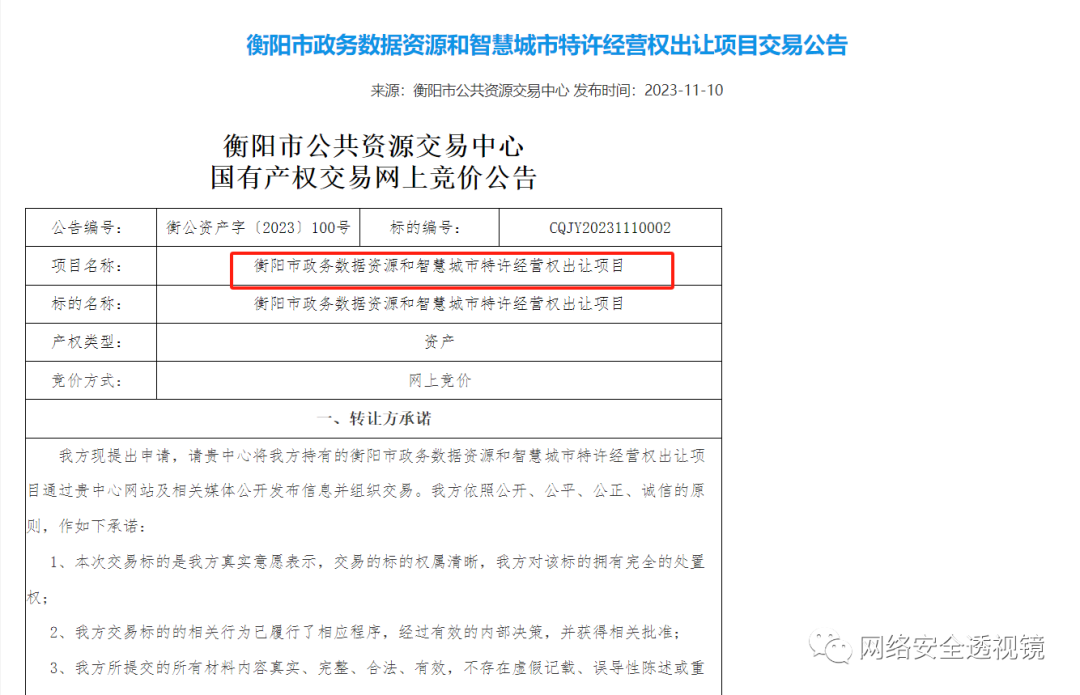近日,湖南衡阳市公共资源交易中心起价18亿,出让政务数据资源和智慧城市特许经营权的要闻引起全社会的极大关注。该笔交易公告一经发布,全网热度急剧攀升,随后各路媒体的报道铺天盖地。