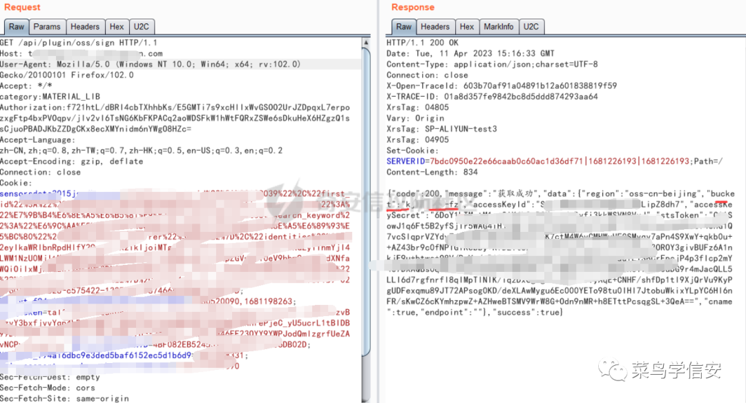 这里通过js审计到查看oss配置信息的接口: