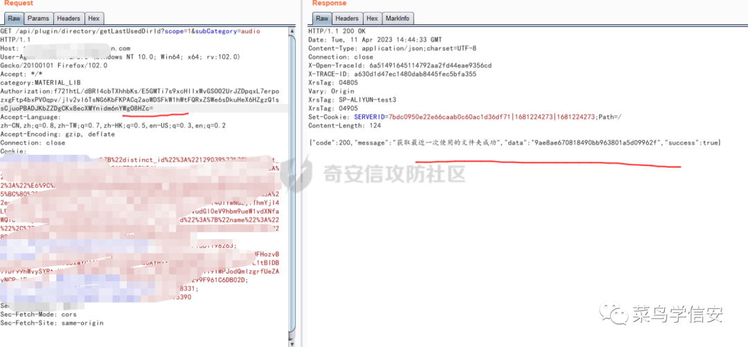 这里再查看js,发现其中给出提示,原来是header要加如下字段:那么我加了其中一个字段category,发现成功,但是却又报了非法用户登录。那么这里就必须需要Authorization认证字段了:因此这里就又碰到了一个棘手的问题,Authorization认证字段这个一般都是成功登录系统后才会赋予给用户的一个值,而这个地方连页面都是空白的,那么这里到底去哪里寻找Authorization认证字段的值呢?这里贯彻着遇事不决看js的思想,继续来审计js,终于发现了解决方法: