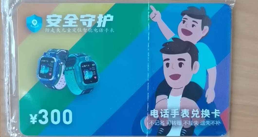 据“平安北京”公众号,近日全国多地有不少人捡到一张“电话手表兑换卡”,印有 300 元面值,还有“安全守护”“防走失儿童定位智能电话手表”等字样。经多地警方向中国移动公司求证核实,近期中国移动并未推出此类活动。