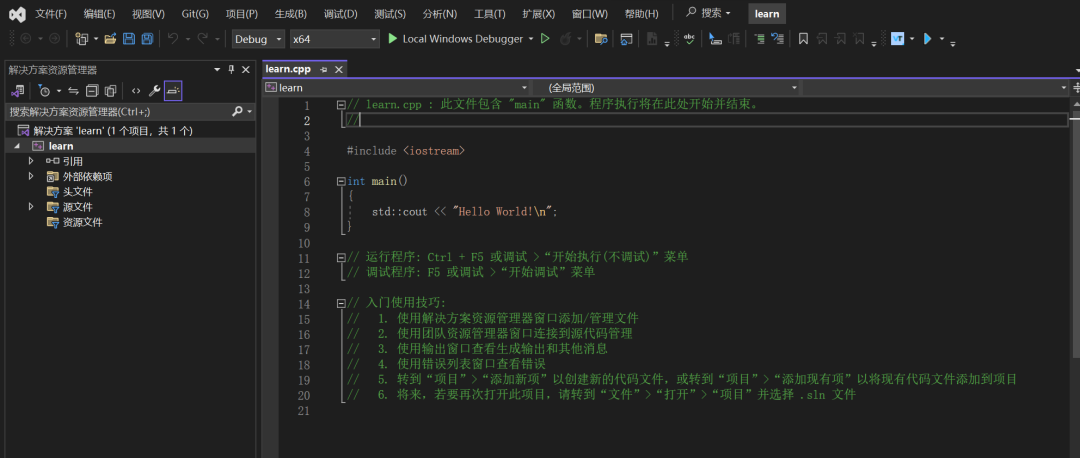 VS 支持中文界面,大部分功能直接看也能看得出来如何使用,因此我也不多讲了,只讲一些要注意的点和使用技巧。