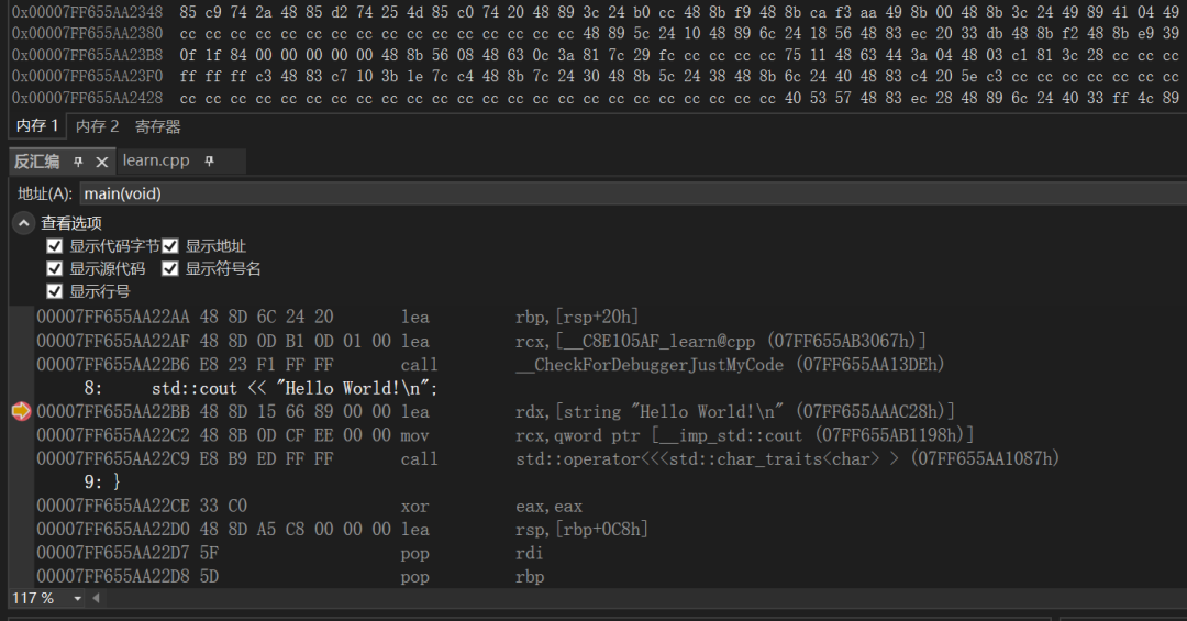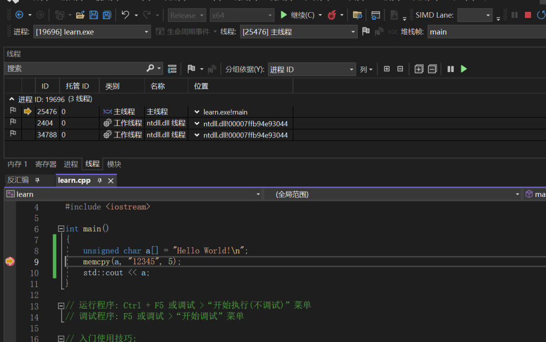 内存窗口用于查看内容有没有被正确的修改非常有用,如远程加载 shellcode 有没有成功、shellcode 有没有被正确的解密。