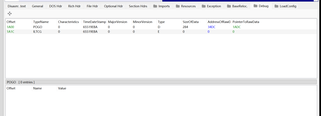 这样打包之后再 PE 文件中就看不到调试信息了: