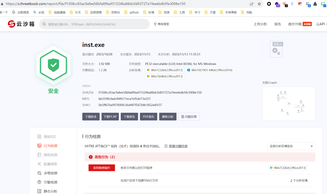 微步沙箱(https://s.threatbook.com/),和 VT 差不多,不同的是能看到更多信息:
