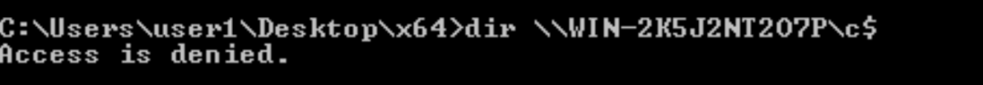 输入命令net use \\WIN-2K5J2NT2O7P\c$,提示Access is denied。