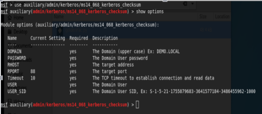 use auxiliary/admin/kerberos/ms14_068_kerberos_checksum列出该脚本所需选项,如图6-58所示。