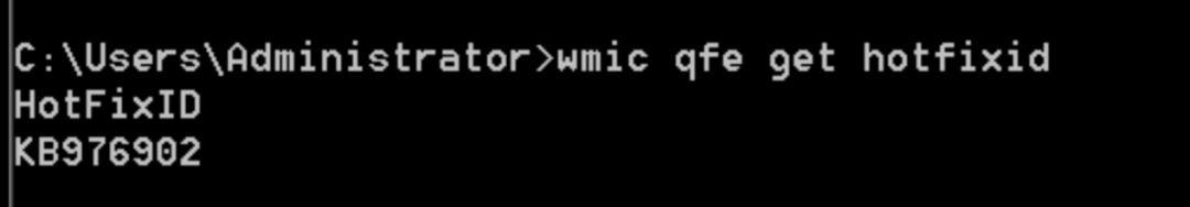 输入命令wmic qfe get hotfixid