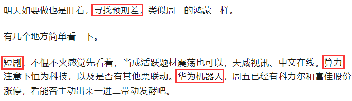 反正我感觉有些难度,哪怕是昨天提的短剧和机器人,这都是事先预判到的应该容易些了吧,然而给的反应时间大约只有三两分钟,错过就没机会了。开盘还因为怕监管匆匆卖了持仓,结果卖飞了,其他的谁都看不上,进一步踏空。