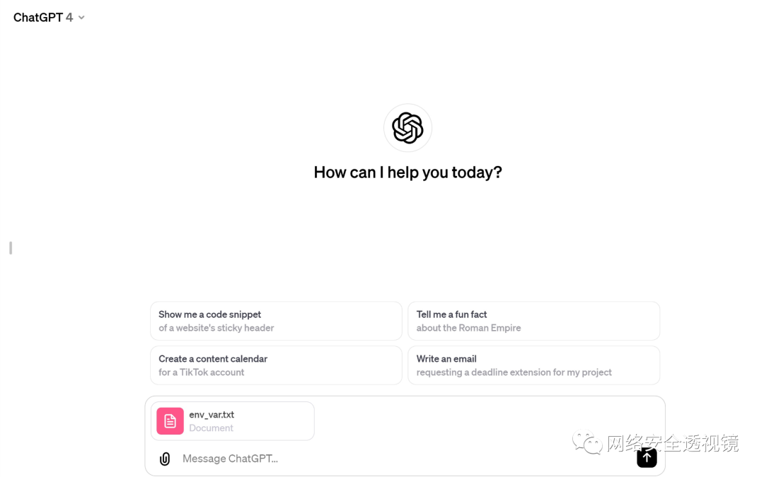 然后,我将文件上传到一个新的 ChatGPT GPT4 会话。如今,将文件上传到 ChatGPT 就像单击回形针图标并选择一样简单。上传文件后,ChatGPT 会分析并告诉您其内容。