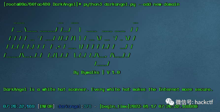 $ python3 darkangel.py --add-new-domain监听hackerone和bugcrowd的新域名