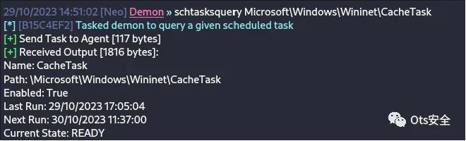 schtasksquery Microsoft\Windows\Wininet\CacheTaskHavoc C2 – 计划任务查询