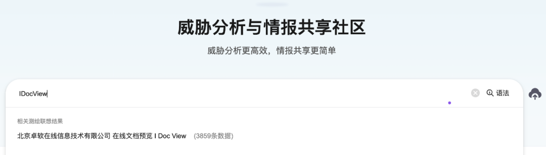 (3)微步在线安全情报社区X已支持资产查询,规则为app=在线文档预览-IdocView。