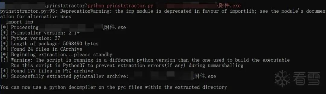 python pyinstxtractor.py 可执行文件exe的地址#!/usr/bin/env python