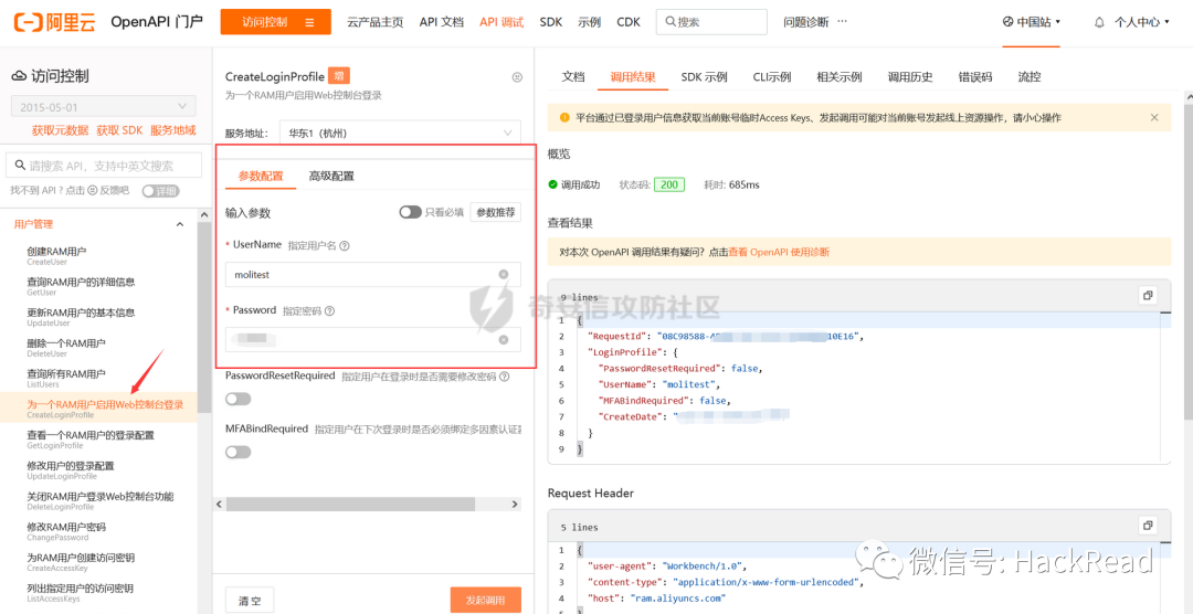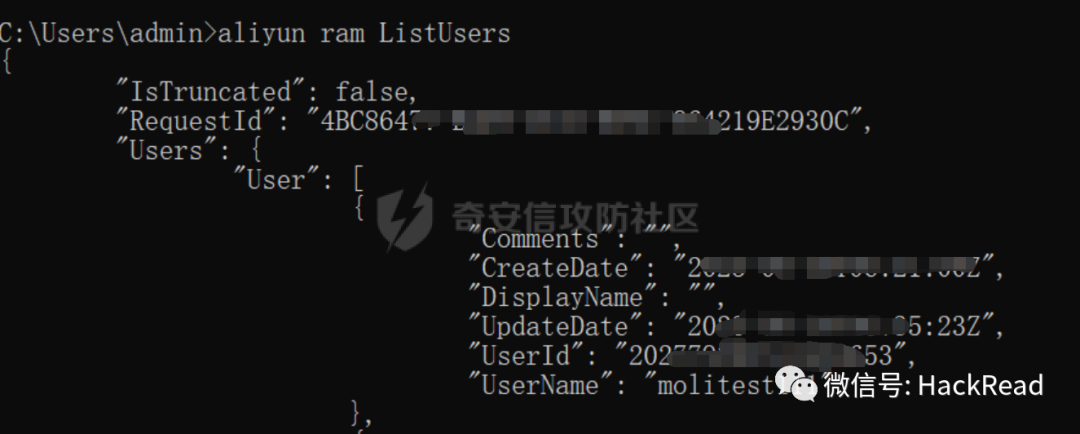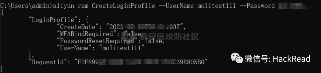 aliyun ram CreateLoginProfile --UserName molitest111 --Password Poker安全然后aliyun ram ListUsers 查看用户创建成功没