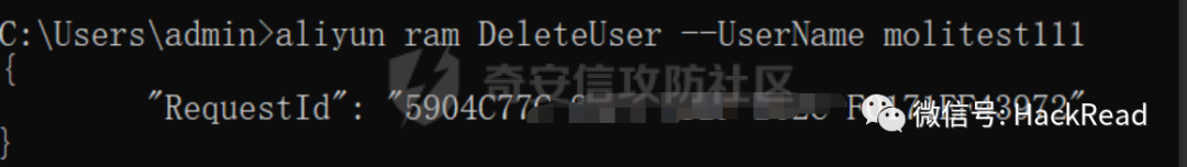 aliyun ram DeleteUser --UserName molitest111