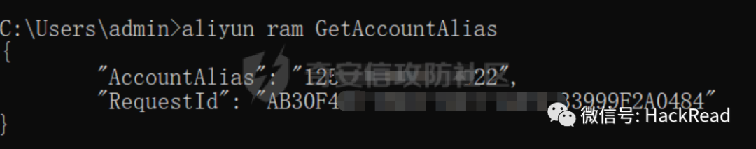 输入 aliyun ram GetAccountAlias查询账号别名