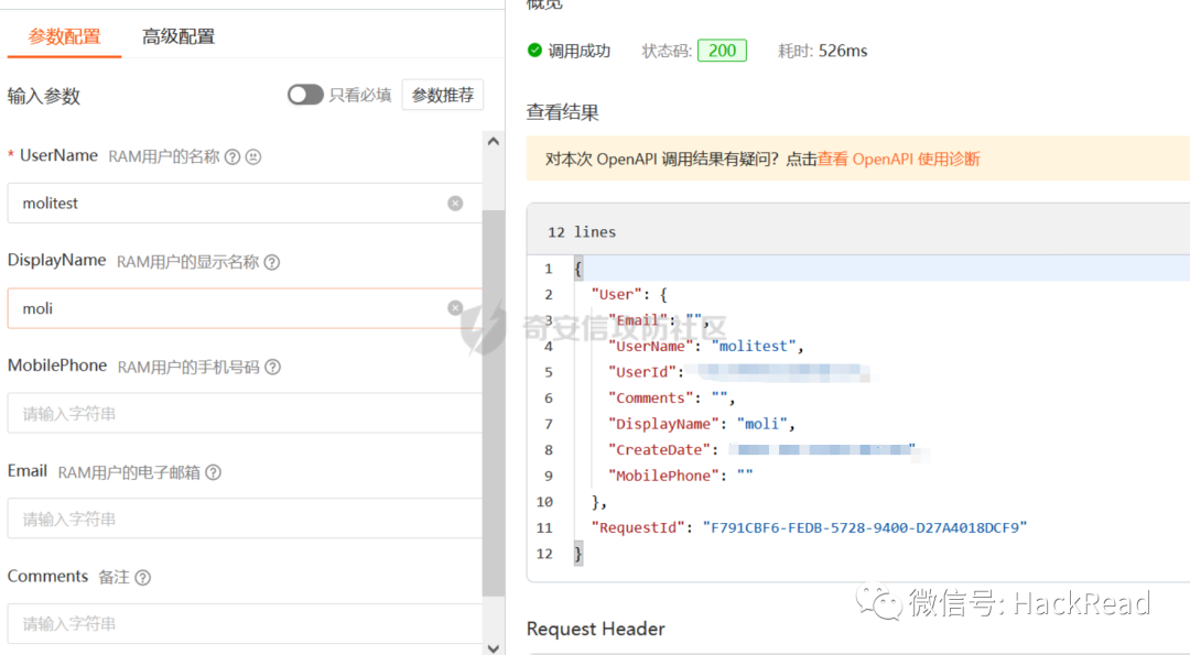 https://next.api.aliyun.com/api/Ram/2015-05-01/CreateUser?spm=api-workbench.API%20Document.0.0.6f991fc66Lk9cV¶ms={%22UserName%22:%22molitest%22,%22DisplayName%22:%22moli%22}&tab=DEBUG我们在渗透或者是挖洞的过程当中,尽量不要留下痕迹以防止溯源之类的情况出现