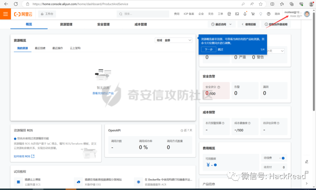 https://next.api.aliyun.com/document/Ram/2015-05-01/overview阿里云是我个人认为公有云最简单也是最容易上手的一个云服务,在很多我们挖洞或者是攻防的过程中会遇到一些ak/sk,习惯了使用cf工具一把梭,从而触发短信或控制台告警,导致目标响应过快,达不到渗透目的,所以本篇写一下自己个人的一些小技巧和心得,如何手动接管阿里云控制台,并且不触发短信告警。