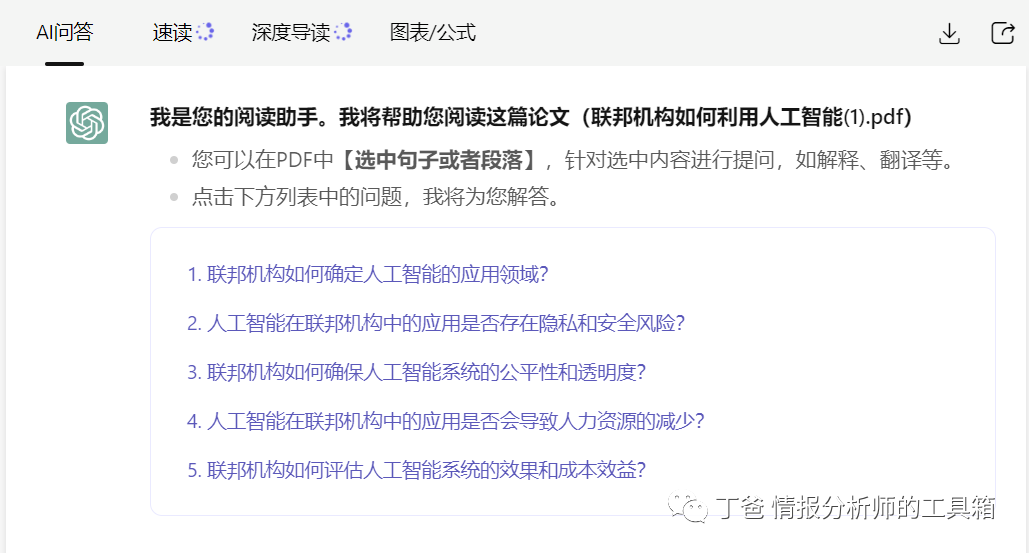 今天小编给大家演示的是利用该工具快速阅读一篇英文文档《联邦机构如何利用人工智能》