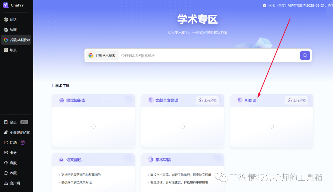 上传需要利用AI进行处理的工具,然后点击屏幕右边的“AI帮读”