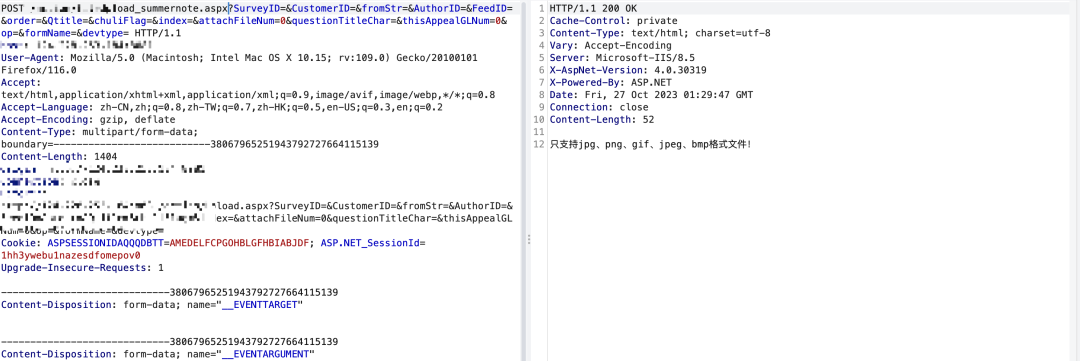 不甘心,于是挨个测试,发现aspx后缀非黑名单即白名单。asp后缀则有点问题。