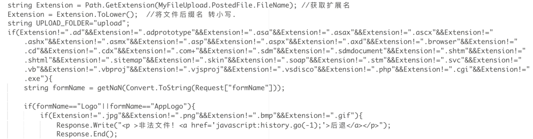 在拿到权限后怀着好奇心又去看了看源码,首先是上传的黑名单 很明显是一个一个后缀去对比的,没啥好的办法。