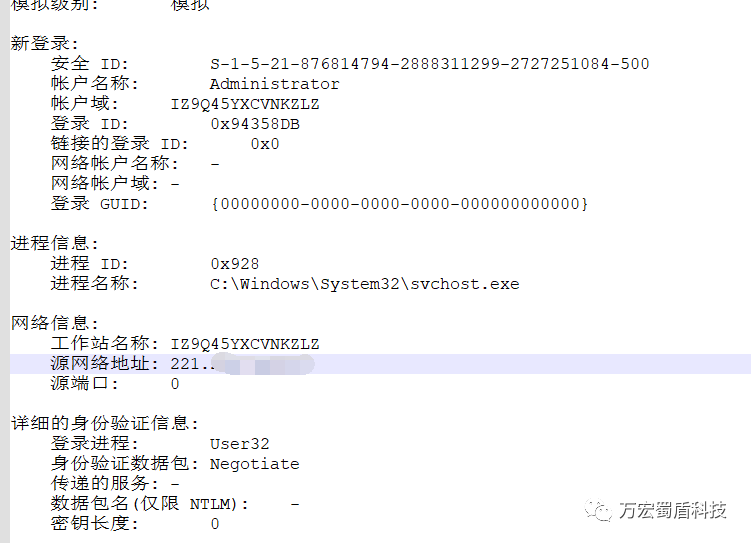 (1)事件ID 4624:表示成功登录,即用户已经通过身份验证成功登录到系统。这个事件记录了登录成功的详细信息,如登录账户、登录类型、登录时间等。