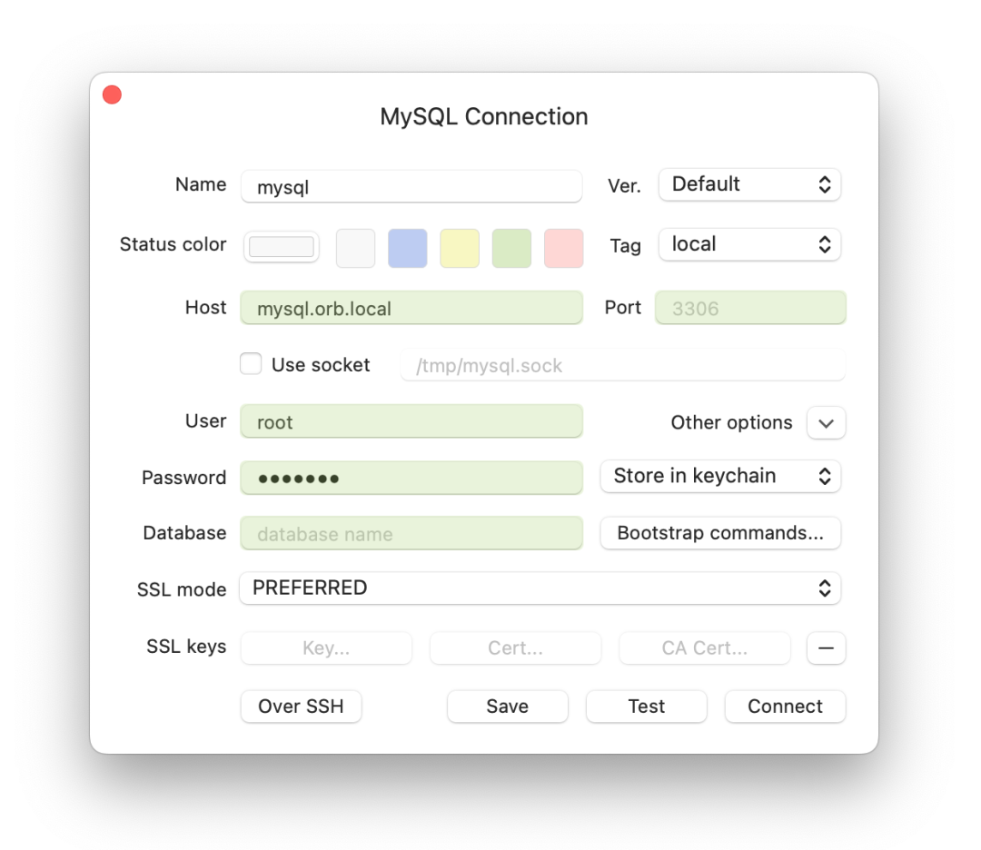 Cool...有了这个能力就非常赞了,我可以轻松地将我的本地 Mysql 连接调整成这个样子。