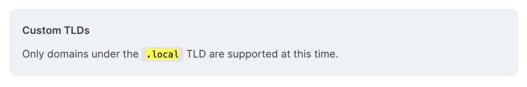 .local这个 TLD 有效,在做自定义域名的时候需要注意下。