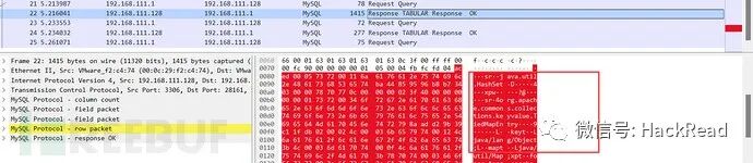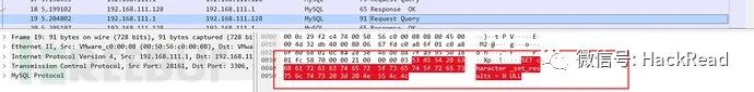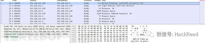 本漏洞利用难点在于如何编写恶意的Mysql服务器,为了更好的分析python脚本,对mysql流量进行分析
