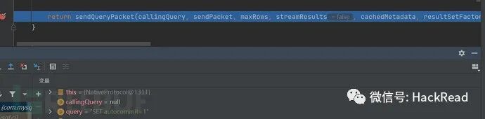 执行了两条sql语句,继续跟进,将查询语句封装成数据包