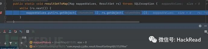 然后跟进 resultSetToMap, 对查询结果集进行处理