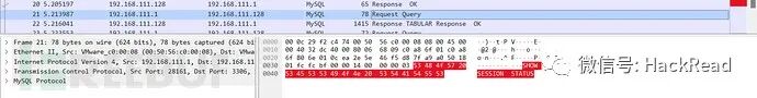 Mysql流量过滤语句:tcp.port ==3306 && mysql (192.168.111.1为客户端,192.168.111.128为Mysql服务端)