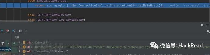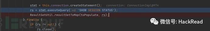 看上面的代码,是没有执行sql语句的,仅仅做了一个数据库的连接,我们知道,恶意Mysql服务器将payload设置为执行sql语句的响应。目前来看,只有连接就可以反序列化成功,那么在数据库连接的时候,就会有内置的sql语句去执行